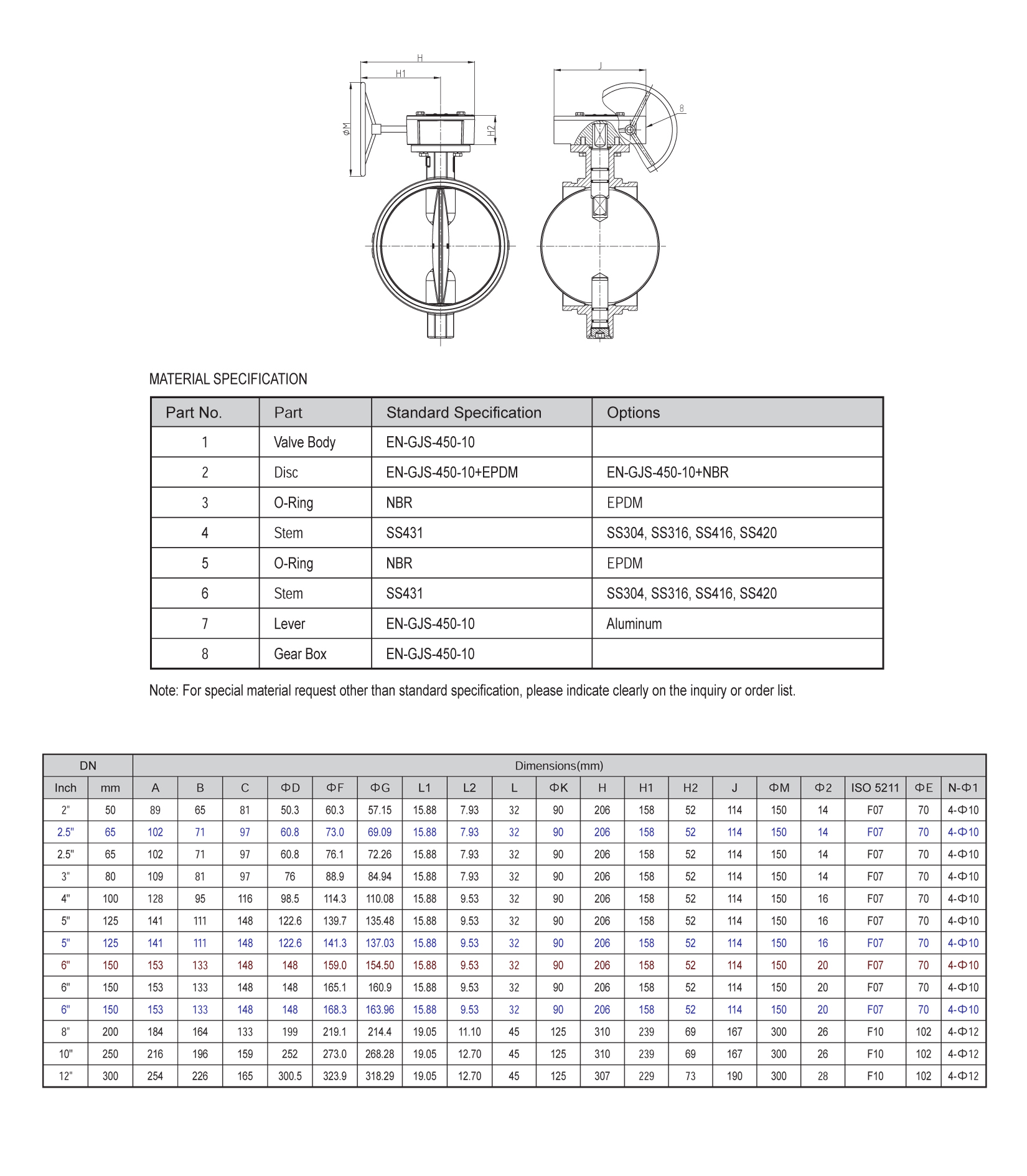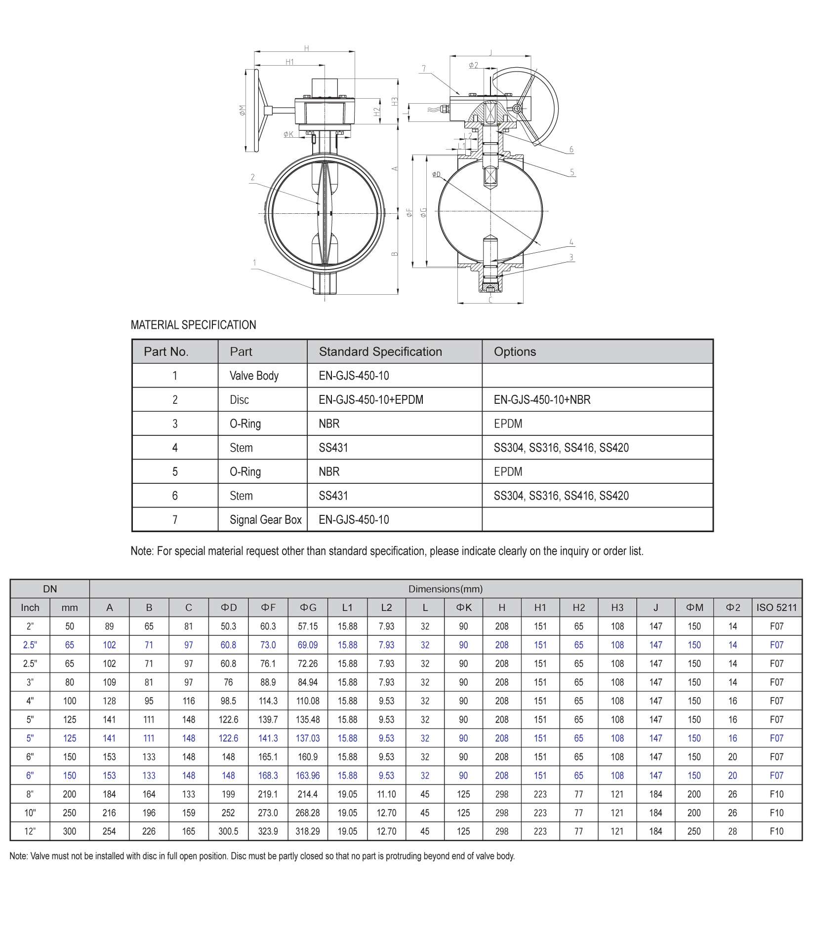 Wafer Butterfly Valve Gear Box Operated