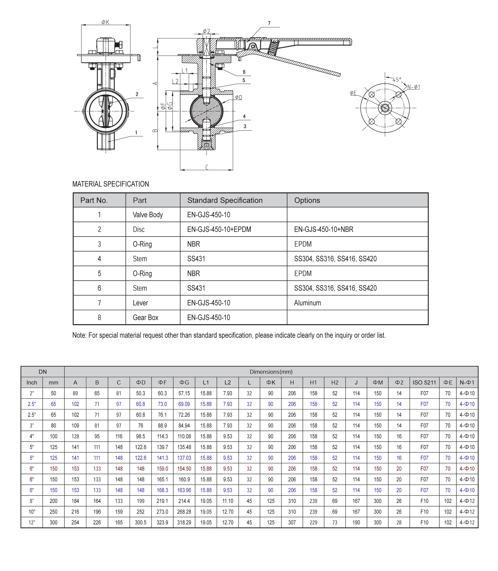 Lugged Wafer Butterfly Valve Gear Box Operated